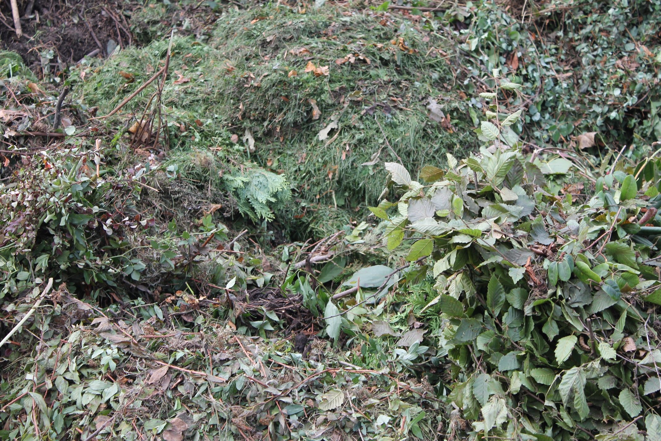 Jegliche Variante von gärtnerischen Abfällen so wie Heckenschnitt, Äste, Schredder-Reste, Wurzeln, usw. mit höchstens 20 cm Durchmesser.